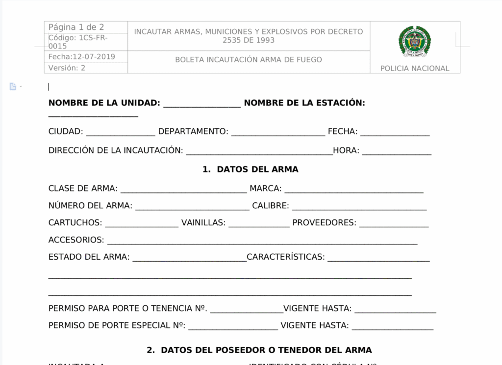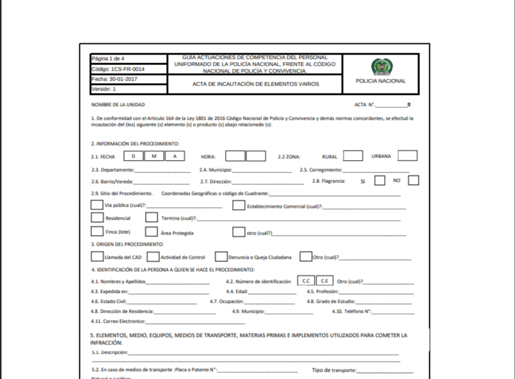 1CS-FR-0015 Acta Incautación Armas de Fuego
